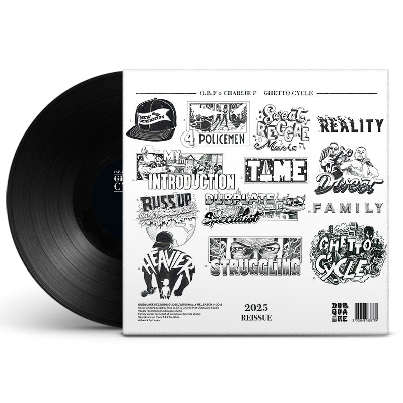 Avec Ghetto Cycle, O.B.F et Charlie P livrent un album complet et percutant, fusionnant reggae digital, dub et sound system culture. À travers 13 titres, Charlie P déploie ses lyrics incisifs et engagés, portés par les productions massives et taillées pour le live d’O.B.F. Un projet dense et sans concessions, fidèle à l’énergie brute et militante qui fait la réputation du crew.